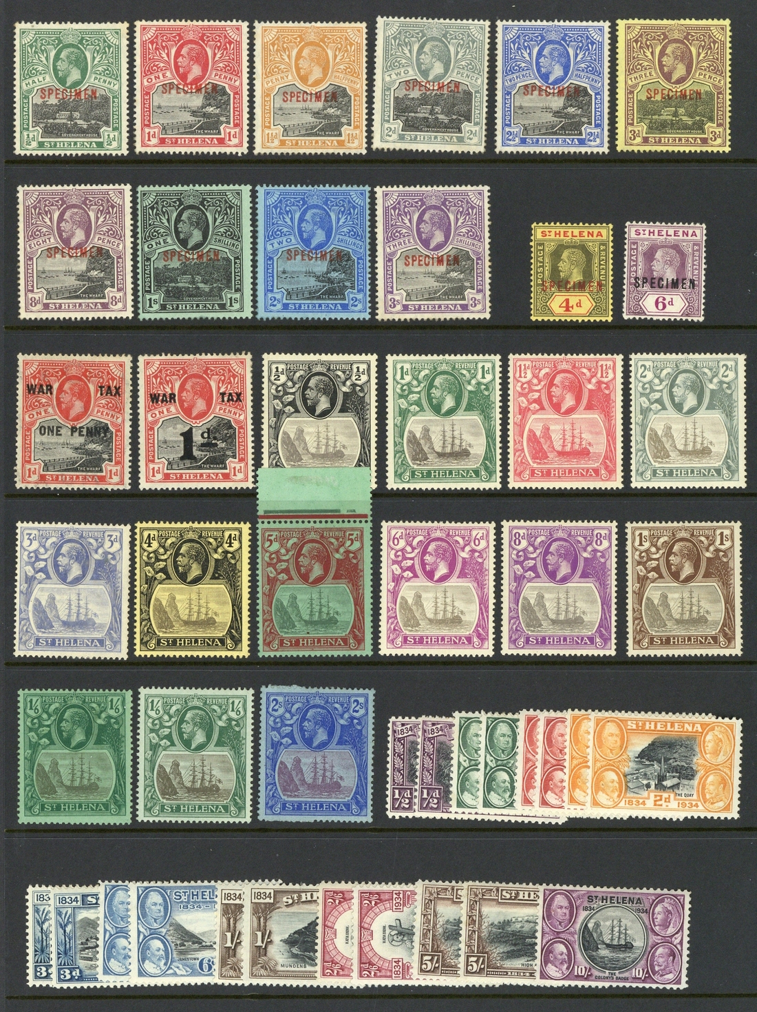 1912-34 mint selection including 1912-16 to 3/- overprinted specimen, 1912 4d., 6d. overprinted "specimen", 1934 Centenary to 10/- with additional values to 5/-. Condition mixed with some fine. (46)