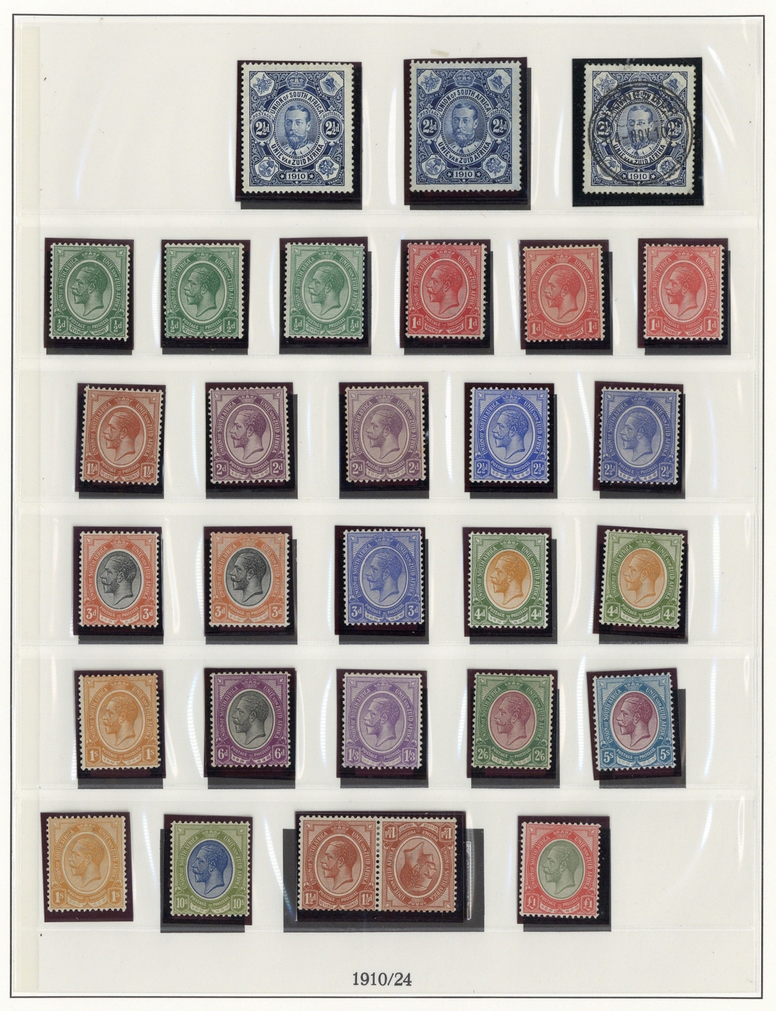 1910-76 a mostly mint collection on printed hingeless pages, hundreds, including 1913-24 ½d. to £1 pale olive-green and red, 1925 Air set, 1927-30 pictorial set, 1930-44 2/6d. (2 shades), 1933-48 6d. "Molehill" flaw, 5/- (2 shades), 10/- (2 shades), 1935 Jubilee set, 1939 Huguenot set, 1947-54 5/- (both shades), 1954 set, later issues, Postage Dues,etc., part original gum or unmounted mint, except one, chiefly fine