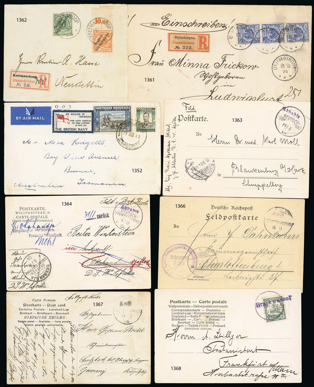 Abbabis: 1904 (19 Aug.) feld picture post card to Blankenburg with violet "Abbabis" (Putzel A1a), arrival d.s. on front; fine. Photo