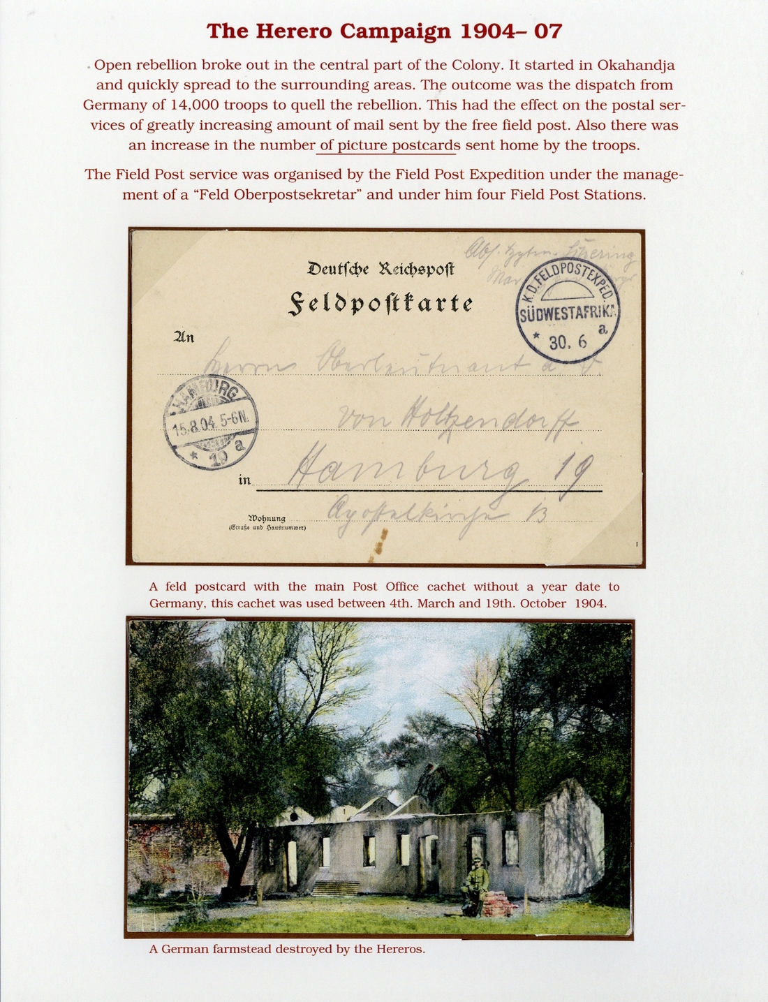 Collection of nine cards and a cover, marking with "k.d. feldpostexped" code a datestamp, "k.d. feldpoststation" Nr. 1, Nr. 2, Nr. 3, Nr. 4, Town datestamps with Hasuur, Okahandja, Otjimbingue, Outjo, Windhuk, etc., fine