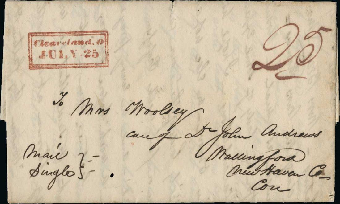 Cleaveland, O/July 25 fully struck red double boxed straightline postmark on 1833 folded letter to New Haven, Ct. with ms. "25" rate, fresh and extremely fine; 2015 PF certificate.