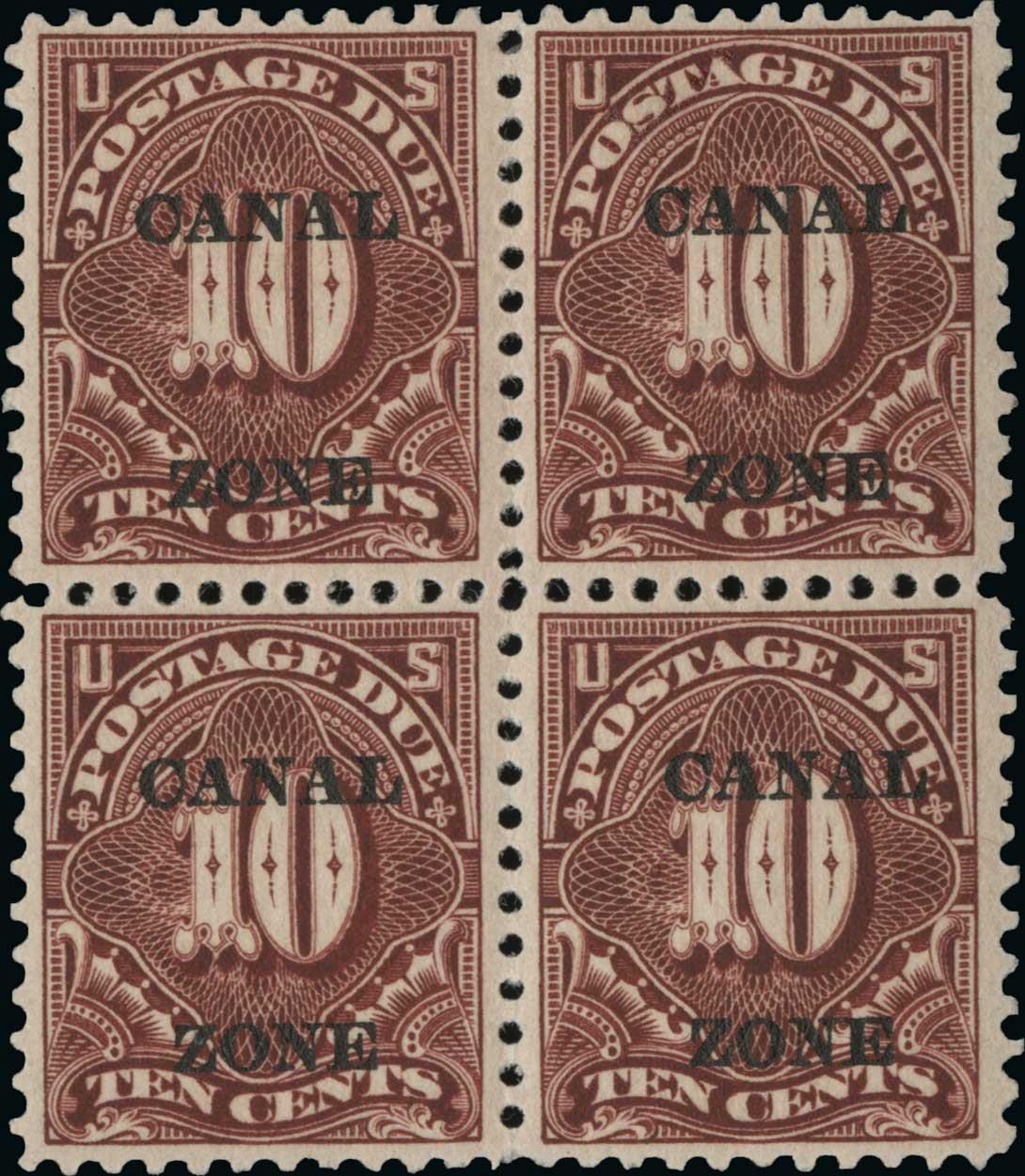 #J14, 10c Deep claret, a very scarce mint block of four showing 2mm spacing, well centered for this always difficult value, intense color tropicalized o.g. as usual, fine-very fine; 2007 PF certificate.