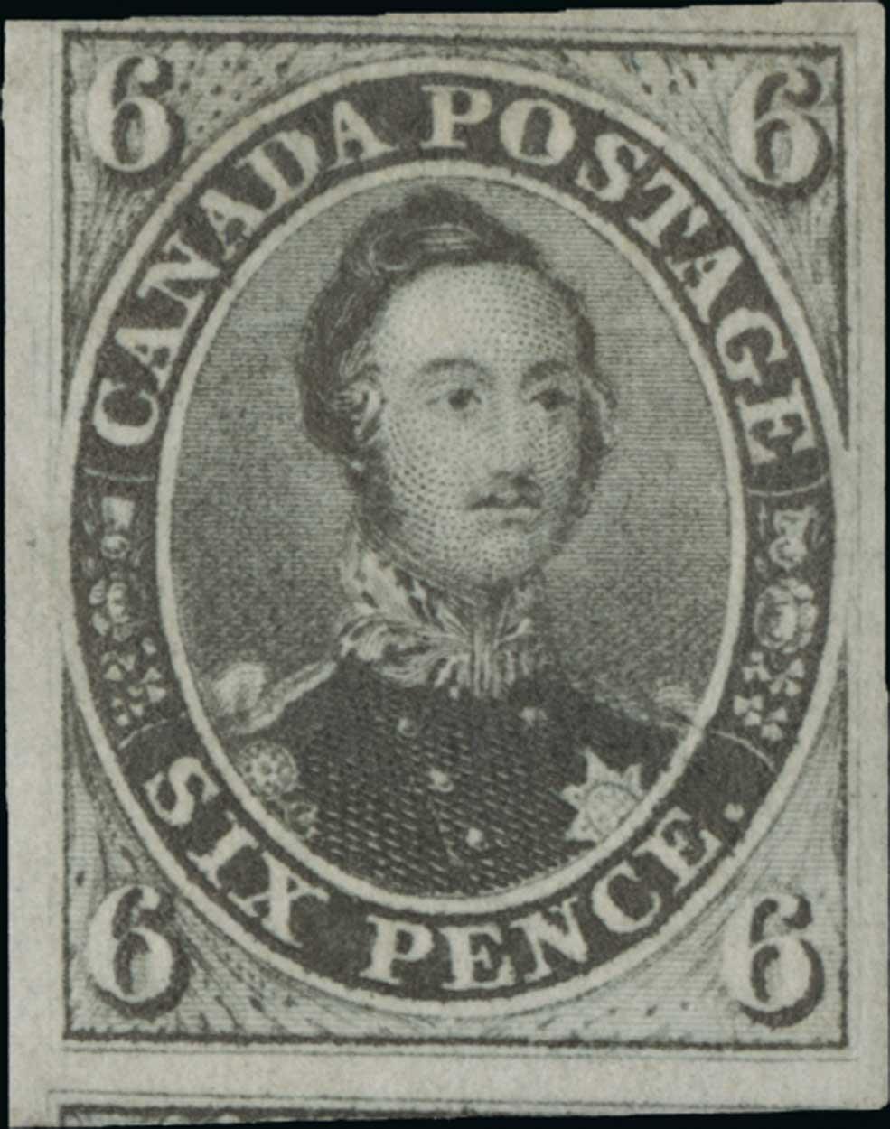 #5a, 1855 6d Brownish gray on wove paper, a handsome unused example of this rare stamp, possessing vivid rich color and a crisp detailed impression on fresh paper, mostly huge margins to barely touching outer frame line at top left, including a portion of the adjacent stamp at base, very fine for this seldom offered unused stamp; 1990 Greene Foundation certificate;
