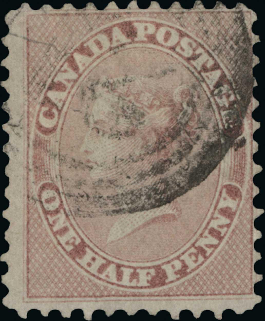 #11, 1858 ½d Rose perforated, used, centered a bit to upper right, which is quite typical of this difficult stamp, tiny corner crease at top left, very good appearance; 2006 CPES certificate (Unitrade C$500.00).