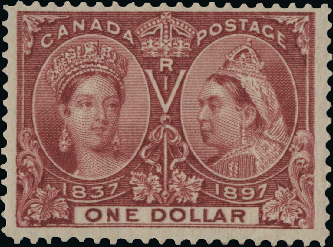 #61, 1897 $1.00 Jubilee, fresh and bright, o.g., l.h., nearly very fine (Unitrade C$600.00).