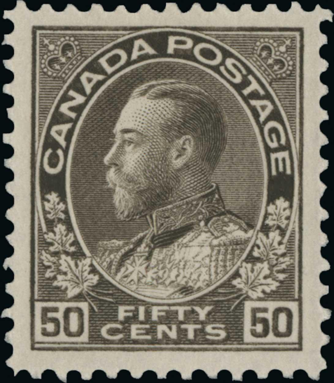 #120, 1925 50c Black brown, dry printing, marvelously well centered mint single possessing large even margins, sumptuous deep color on fresh white paper, immaculate o.g., n.h., extremely fine and choice; 2015 PSE certificate (XF-Superb 95) (Unitrade C$360.00).