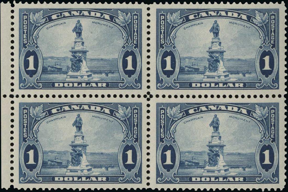 #217-27, 1935 1c-$1.00 King George V Pictorials post office fresh mint blocks of four, o.g., n.h., very fine set (Unitrade C$1,170.00).