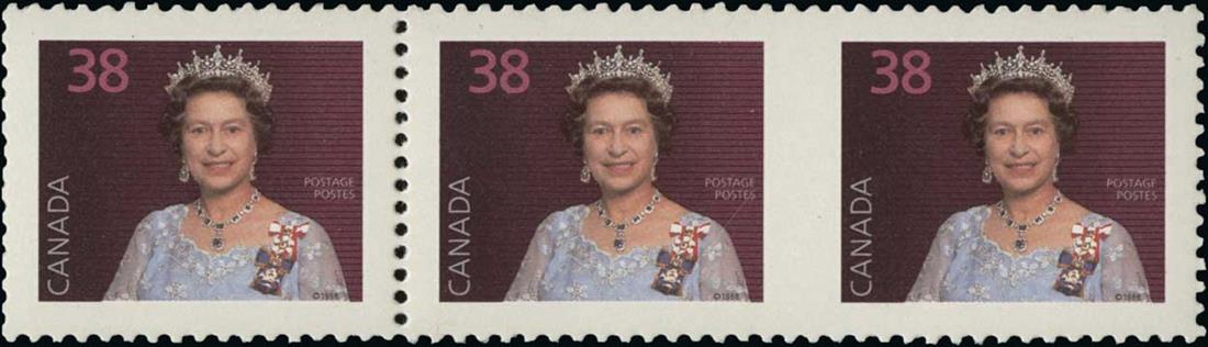 #1164d, 1988 38c Multicolored, imperforate between, horizontal strip of three, the right pair the error, o.g., n.h., very fine and rare;