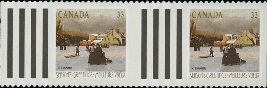 #1259b, 1989 33c Christmas, imperforate vertically, horizontal pair, o.g., n.h., very fine; only fifteen pairs have been discovered;