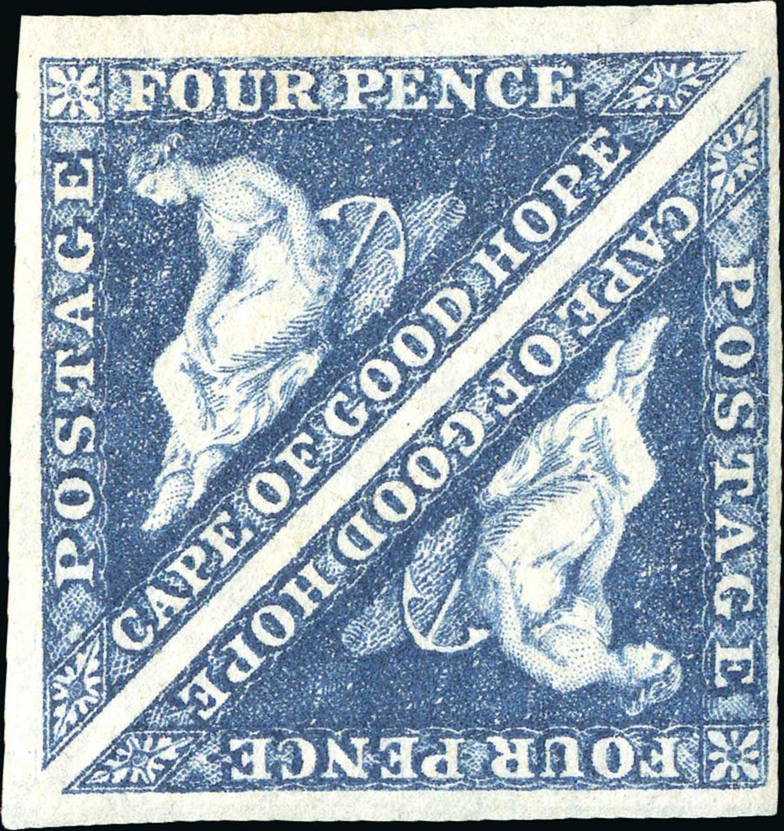 #13, 1864 4d Dark blue, a brilliant mint pair, o.g., lightly hinged, good to mostly enormous margins, lovely impression and color, extremely fine. (S.G. #19. £600).