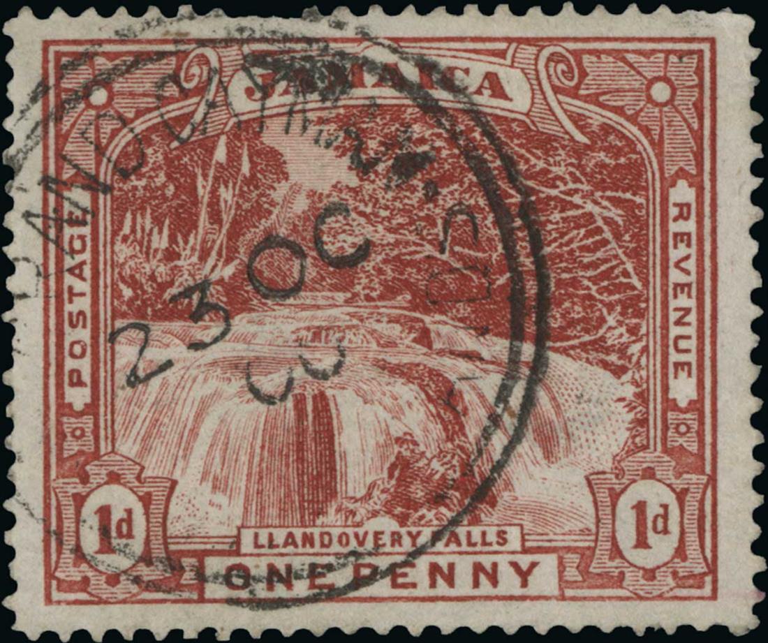 #A19, 1898-1901 Jamaica 1900 1d Red, cancelled by double circle "Grand Cayman/Cayman Islands/23 Oc, 00" datestamp, stamp with a faint horizontal crease not noted on the certificate, otherwise very fine; 1971 BPA certificate (S.G. #Z12; £650).