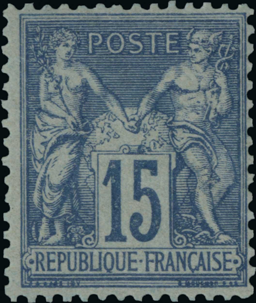 #92b, 1878 15c Blue on bluish, Ty. II, post office fresh mint single, pristine o.g., n.h., fine and scarce (Yvert #90a).