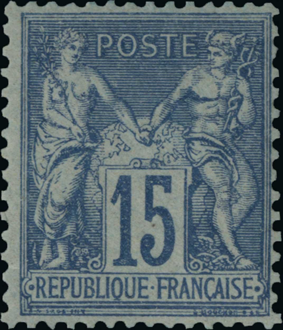 #92b, 1878 15c Blue on bluish, Ty. II, another post office fresh mint example, unblemished o.g., n.h., fine and scarce (Yvert #90a).