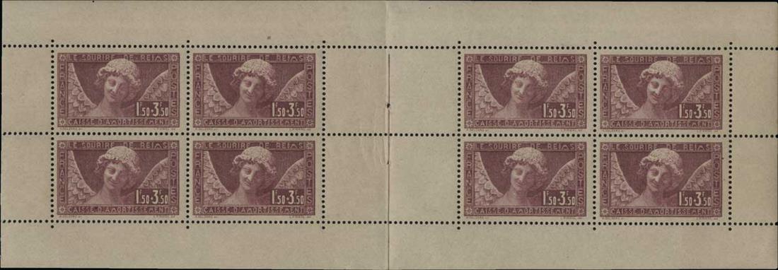 #B34b, 1930 1.50Fr+3.50Fr Smile of Reims, booklet pane of eight, with original booklet cover, o.g., l.h. in the selvage, the stamps all n.h., one stamp with a natural inclusion, very fine.
