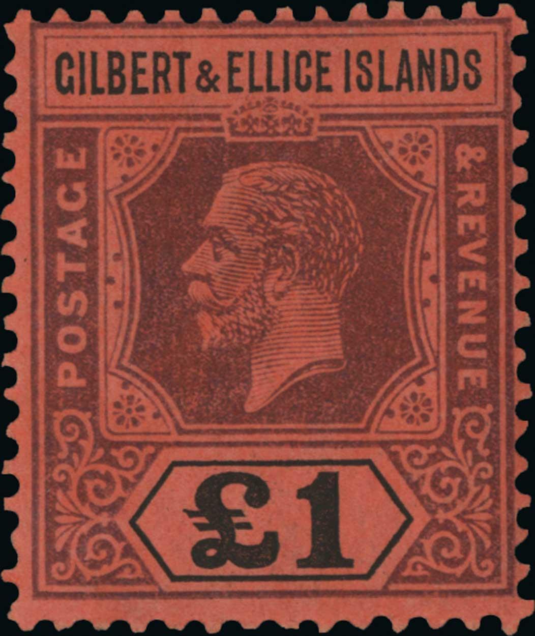 #26, 1924 £1 Violet and black on red, vivid rich colors, o.g., fine (S.G. #24; £550).