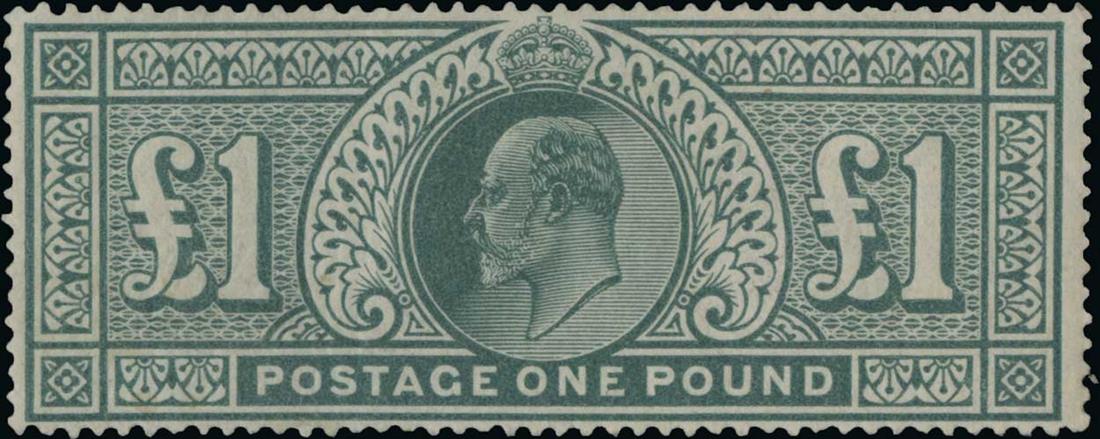 #142, 1902 £1 Blue green, De La Rue printing, particularly fresh and well centered, strong color, o.g., n.h., very fine and choice; seldom offered never hinged; 2008 Garanzia certificate (S.G. #266; £3,500).