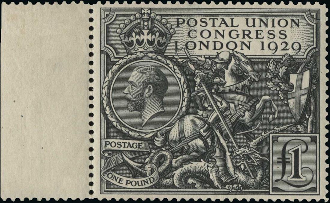 #209, 1929 £1 P.U.C., left sheet-margin single, well centered, o.g., h.r. in the selvedge only, the stamp n.h., extremely fine; 1981 E. Diena certificate (S.G. #438; £1,100).
