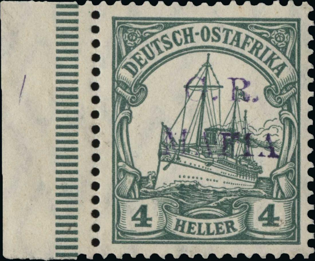 #NL26, 1915 Reddish violet "G.R./MAFIA" overprint on 4h Green, left sheet-margin single, wonderfully fresh and well centered, pristine o.g., n.h., very fine and choice; seldom offered never hinged; signed Bloch and accompanied by 1998 BPA certificate (S.G. #M2C; £325 for hinged).