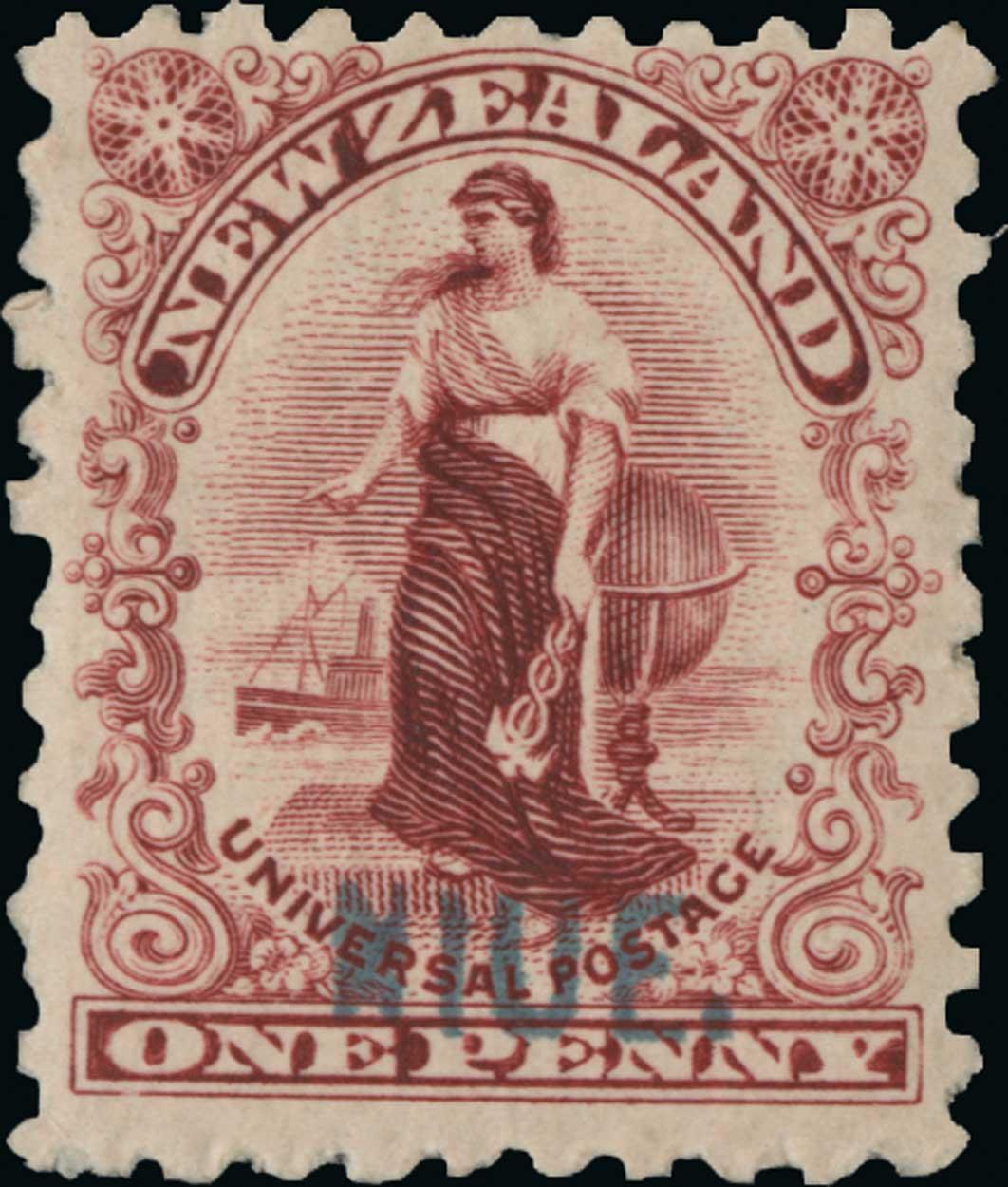 #1, 1902 1d carmine overprinted "NIUE" in bluish green, o.g., h.r., fine example of this difficult stamp; signed Bloch (S.G. #1; £300).