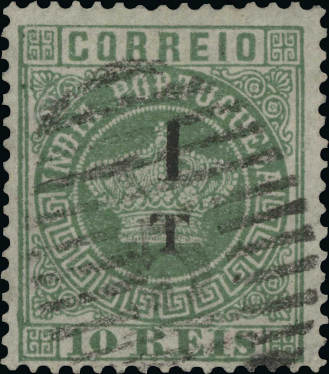 #131, 1881-82 "1/T" Surcharge on 10r Green, used with barred cancel, strong color on fresh paper, fine and scarce; 2015 ISPP certificate.