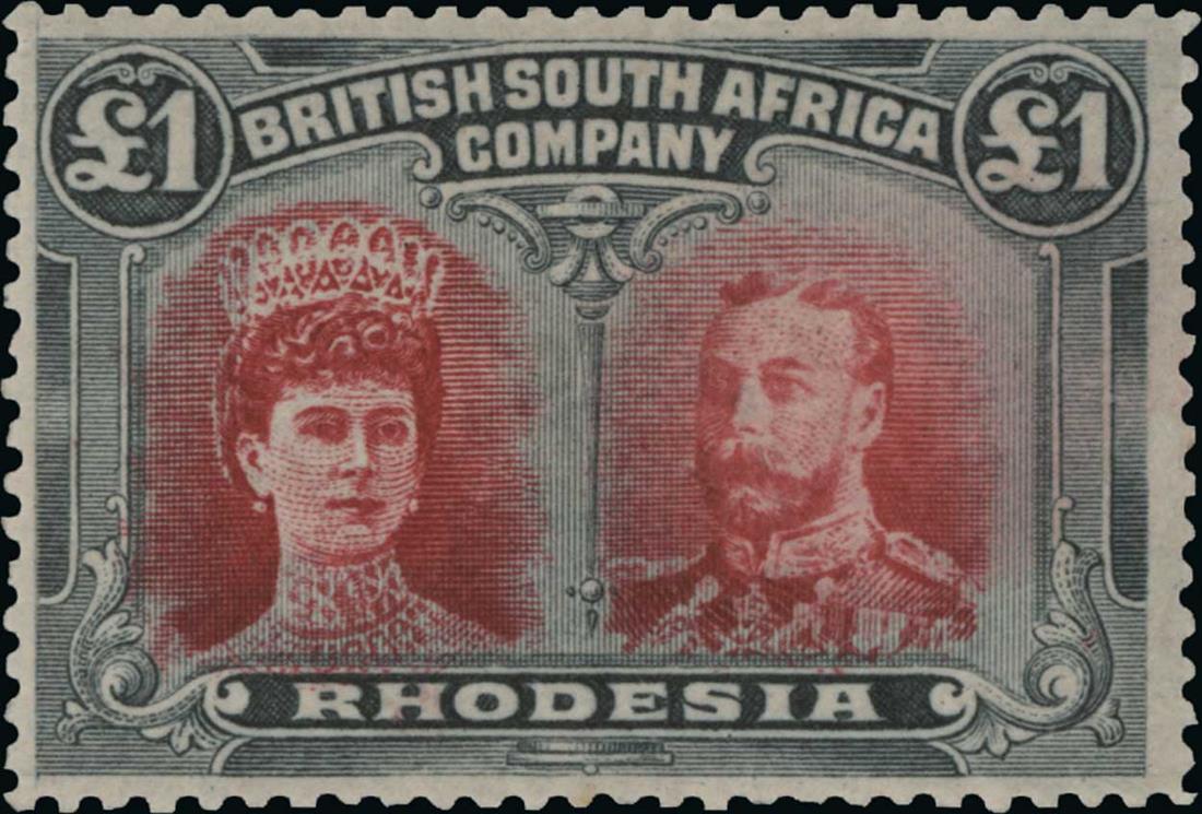 S.G. #166a, 1913 £1 Crimson and slate-black, fresh mint example of this scarcer shade, rich colors and sharp impression, o.g., relatively lightly hinged, very fine.