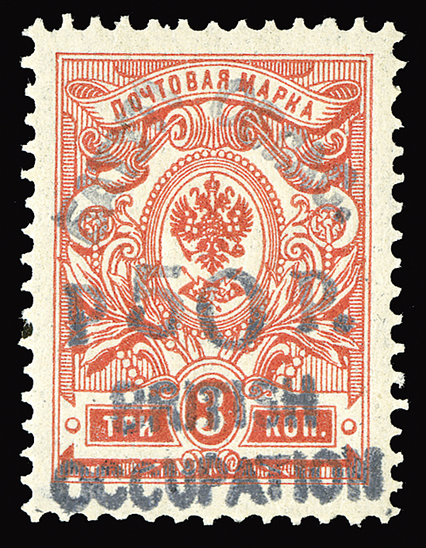 S.G. #24, 1920 50R on 3k Carmine red, unusually well centered mint single, deep rich color, o.g., l.h., very fine; a very scarce and seldom seen stamp, only 200 stamps were ever issued (Scott #28; $1,700.00). SG Cat Val. £1,500