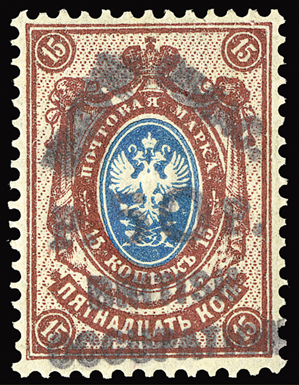 S.G. #28, 1920 50R on 15k Blue and red brown, fresh mint single, strong colors, o.g., l.h., nearly very fine; only 300 stamps were issued (Scott #32; $700.00). SG Cat Val. £850