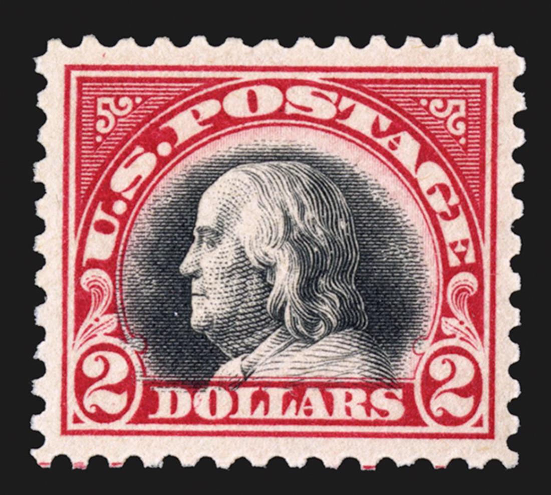 #547, $2.00 Carmine and black, large margins despite being reperforated at right, o.g., n.h., extremely fine appearance; 2016 PSE certificate.