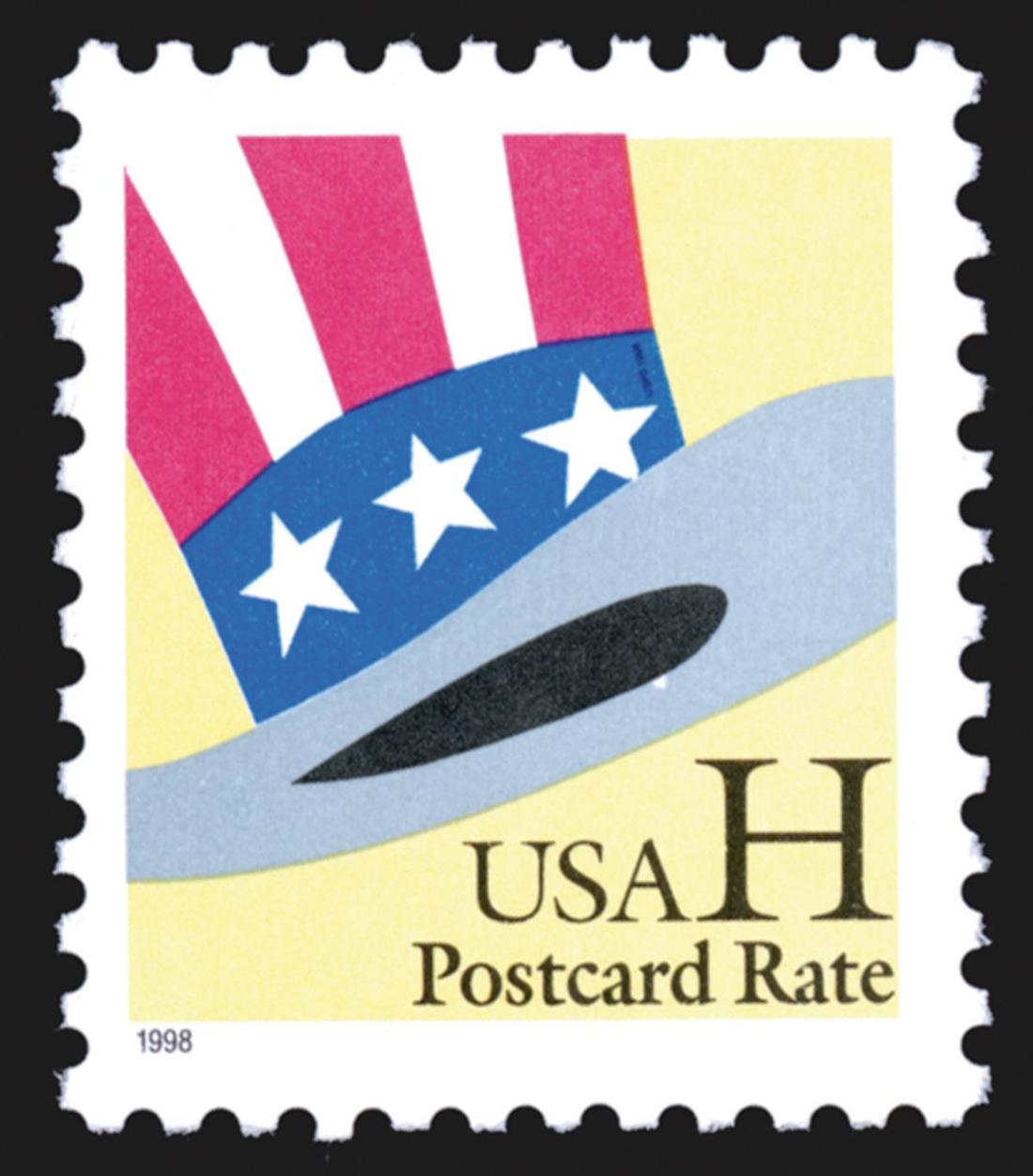 #3269 Footnote, "H" non-denominated stamp inscribed "Postcard Rate," the so-called yellow hat unissued variety, o.g., n.h., very fine; photocopy of 2006 PSE certificate for the block of four from which it was take.