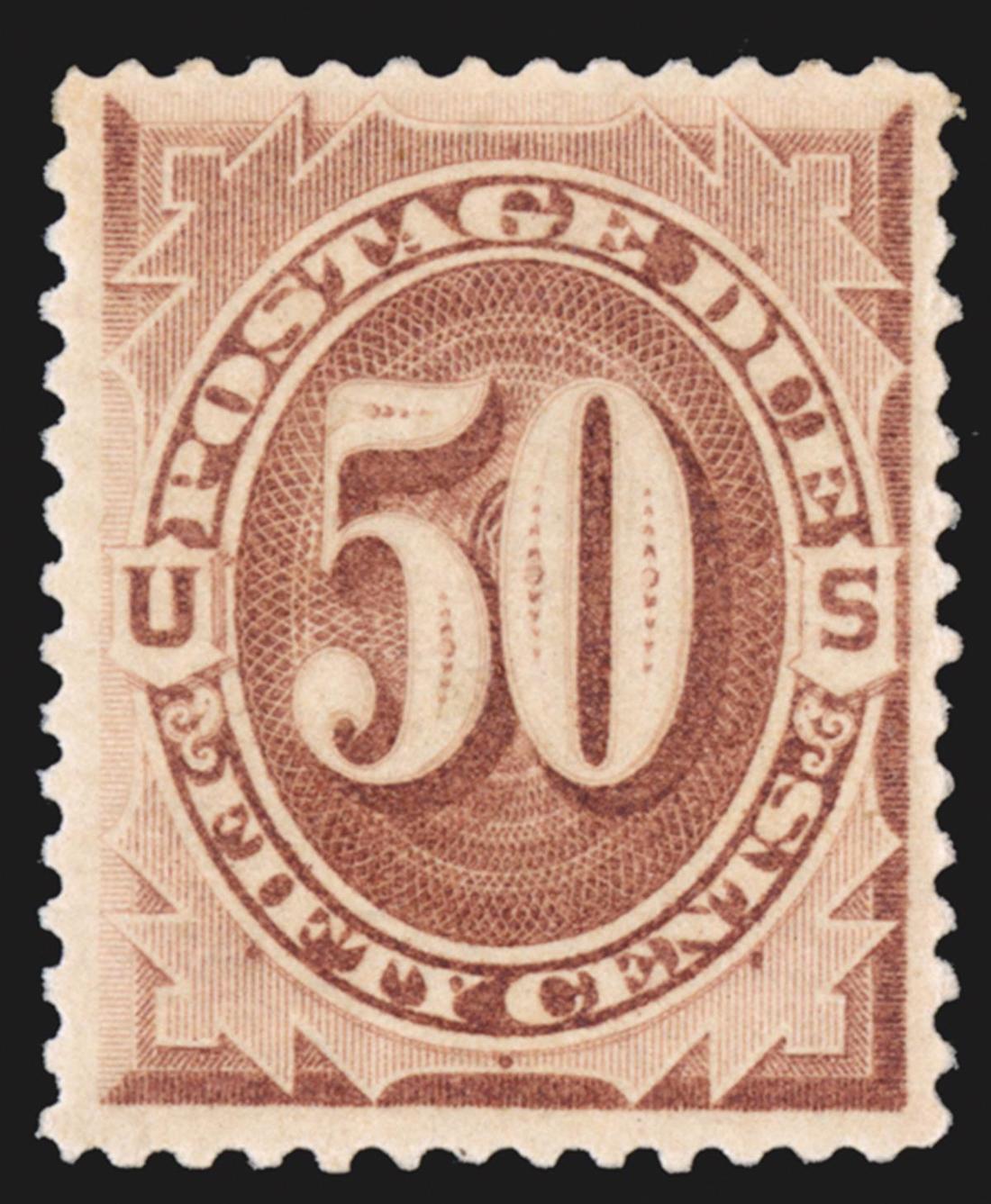 #J7, 50c Brown, fresh mint example, strong color and sharp impression, o.g., lightly hinged, very fine; 2013 PF certificate.