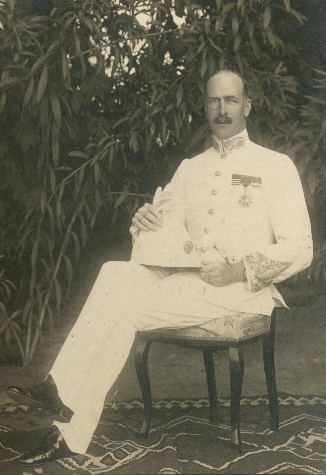 'The Lot is also now offered with two original photographs of the recipient. The first is c.1910 and features the recipient in a tropical setting, wearing white Service Dress and the Queen's South Africa Medal with three clasps, the Turkish Order of Osmania and the Khedive's Sudan Medal 1896-1908 with one clasp. The recipient's family record confirms service as "Civil Surgeon and Honorary Bimbashi, Egyptian Army, Khedives Sudan Medal 1896-1908 with Bahr el Ghazal 1900-02 bar." It has been broug