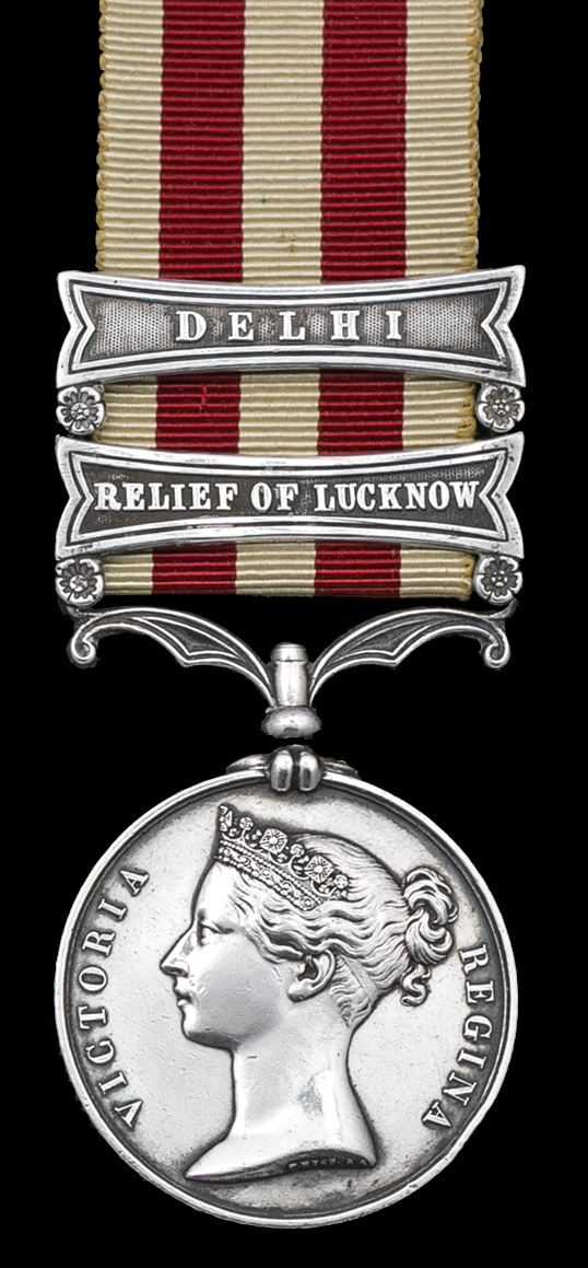 Indian Mutiny 1857-58, two clasps, Delhi, Relief of Lucknow (John Bowen, 1st Bn. 8th Regt.), edge bruising, very fine