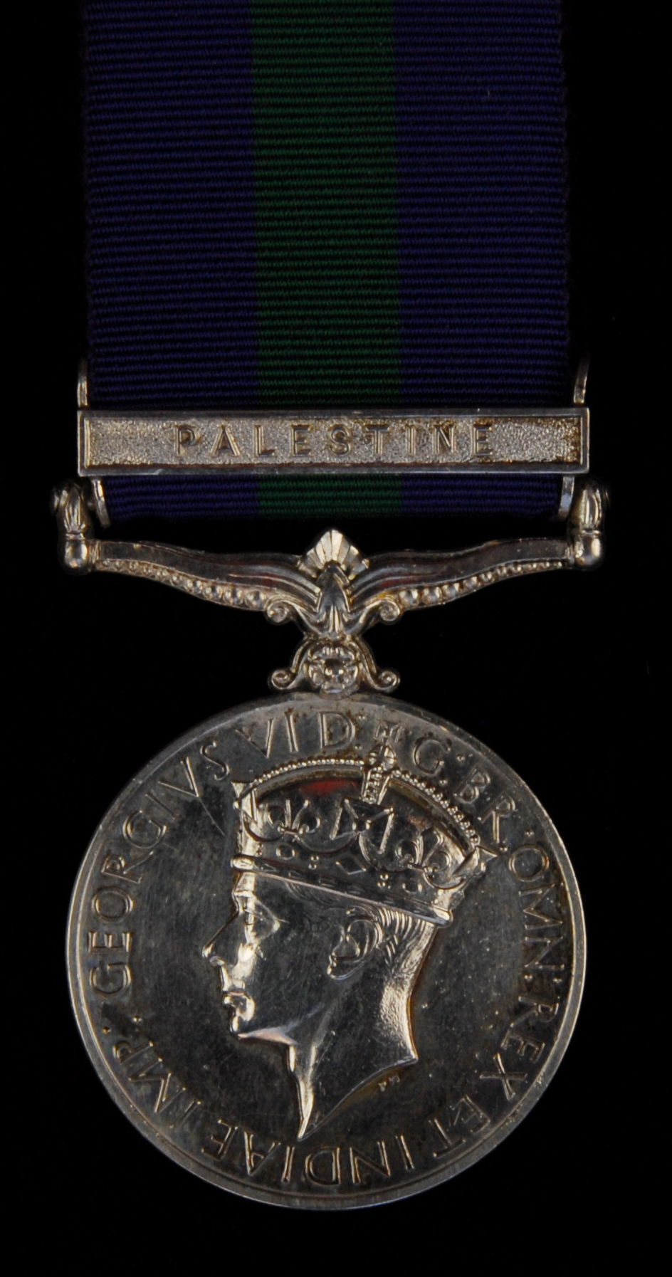 General Service 1918-62, G.VI.R., one clasp, Palestine (6286135 Pte. K. Leftley. The Buffs.), official corrections to surname and unit, traces of lacquer, good very fine