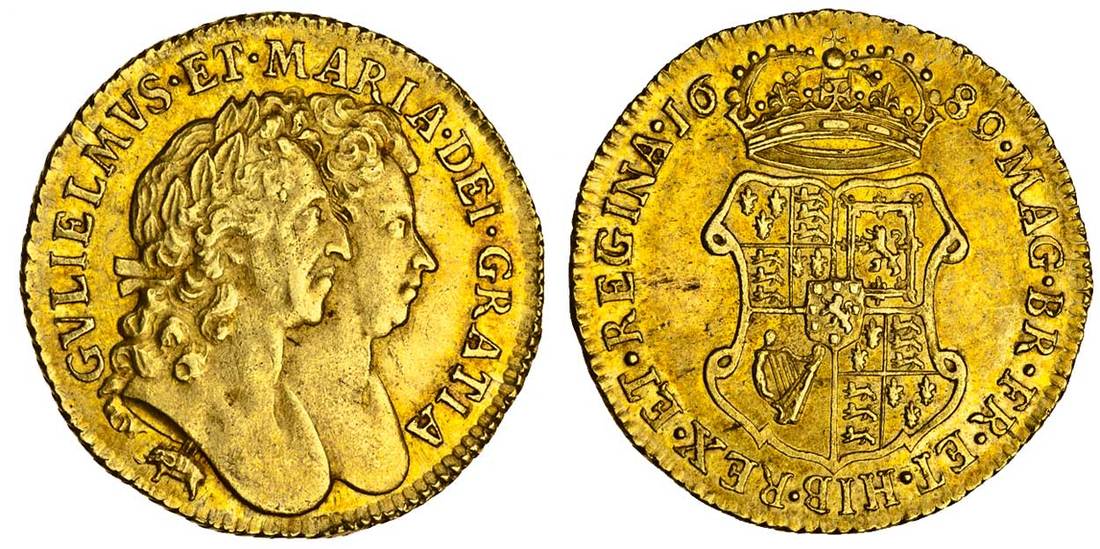 William and Mary (1688-94), Guinea, 1689, conjoined busts right, elephant and castle below busts, rev. crowned shield, g of Regina over e (MCE 149; S.3427), good very fine / extremely fine, with lustre, rare