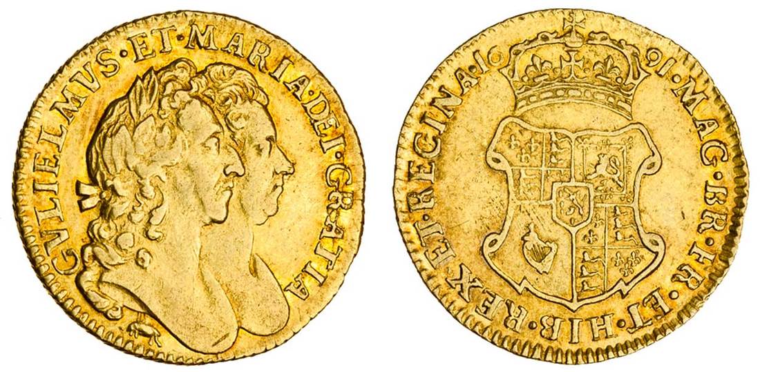 William and Mary (1688-94), Half-Guinea, 1691, second busts right, rev. second crowned shield (MCE 164; S.3430), small mark on king's bust, good very fine with some lustre