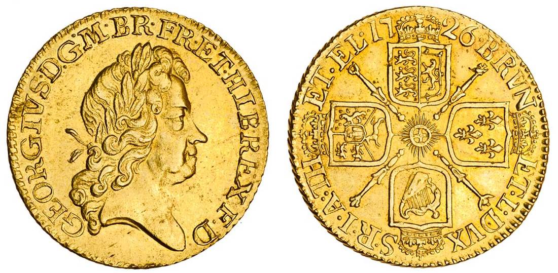 George I (1714-27), Guinea, 1726, fifth (older) head right, tie with two ends, rev. four crowned shields cruciform (MCE 261; S.3633), about extremely fine