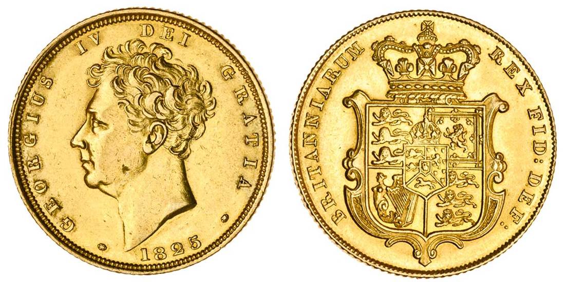 George IV (1820-30), Sovereign, 1825, second type, bare head right, rev. crowned shield (MCE 475; S.3801), very fine