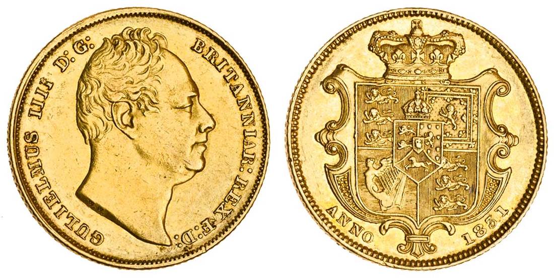 William IV (1830-37), Sovereign, 1831, first bust right, top of ear narrow and rounded, nose to second n in britanniar, ww incuse with stops, rev. crowned shield (EMC 489; S.3829), very fine