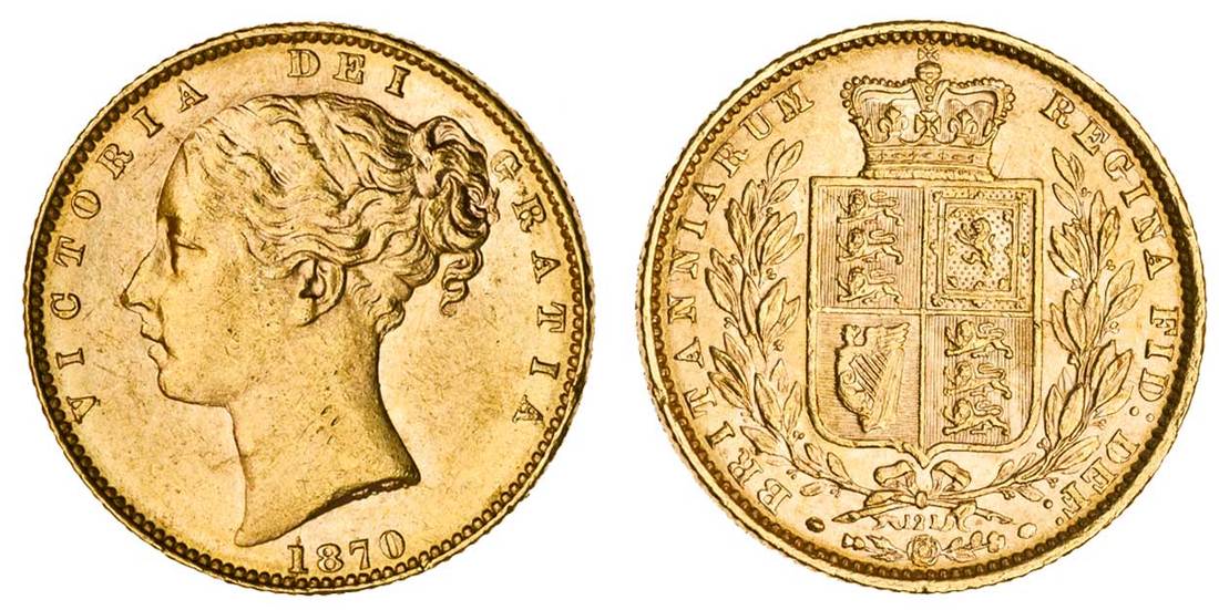 Victoria (1837-1901), Sovereign, 1870, die no. 121, second head left, WW in relief on truncation, date below, rev. crowned shield (Marsh 54; EMC 530; S.3853B), extremely fine