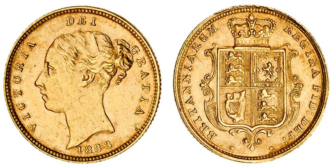 Victoria (1837-1901), Half-Sovereign, 1883, fifth young head left, date below, rev. shield with cross on crown buried in border (EMC 601; S.3861), good very fine