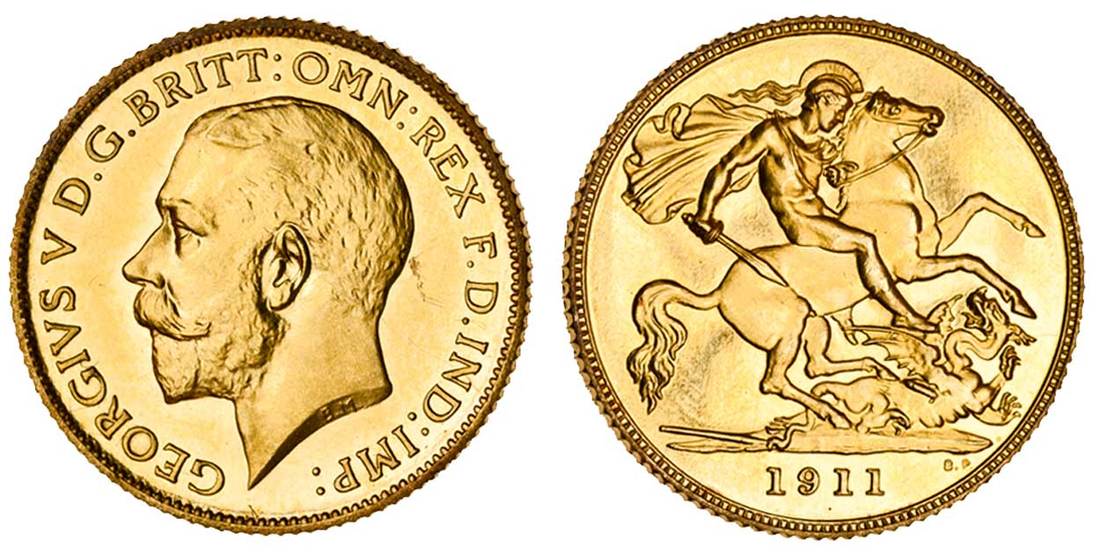 George V (1910-36), proof Half-Sovereign, 1911, London, bare head left, rev. St George and dragon (S.4006), hairlines on obverse and a small mark behind head, otherwise brilliant uncirculated