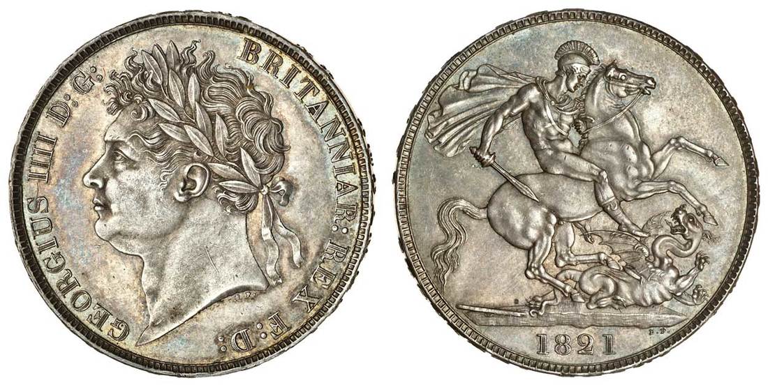 George IV (1820-30), Crown, 1821, secundo, laureate head left, rev. St George and dragon (ESC 246; S.3805), toned, extremely fine
