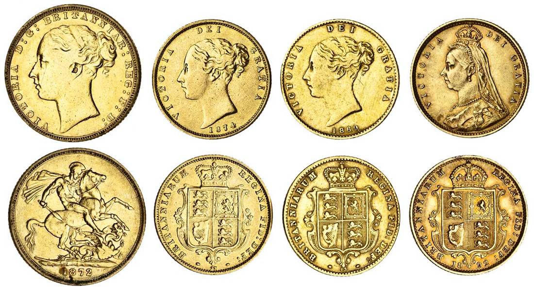 Victoria (1837-1901), Sovereign, 1872 (S.3856A), Half-Sovereigns (3), 1869, 1874 (S.3860, 3860D), 1892, Jubilee bust left, no JEB initials on truncation, rev. high shield (S.3869C), polished, fine, the last very fine (4)