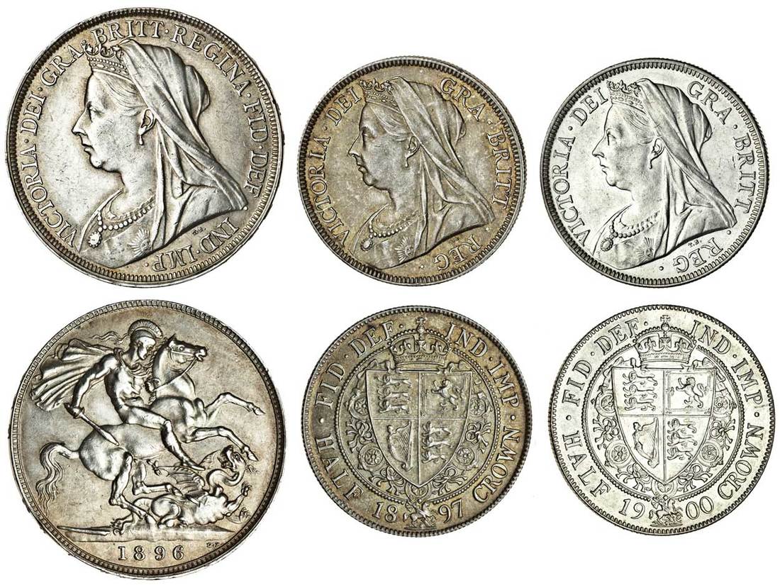 Victoria (1837-1901), Crowns (2), 1887, 1896, LX, (ESC 296, 311; S.3921, 3937), Halfcrowns (2), 1897, 1900 (ESC 731, 734), Double-Florin, 1887, Roman I in date (ESC 394; S.3923), first polished, very fine, others extremely fine (5)