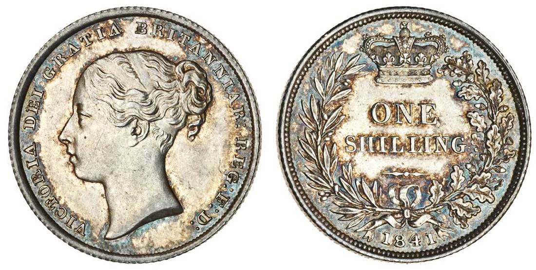 Victoria (1837-1901), Shilling, 1841, second head left, no initials on truncation, rev. value within wreath (ESC 1287; S.3904), light toning, about extremely fine with lustre, rare