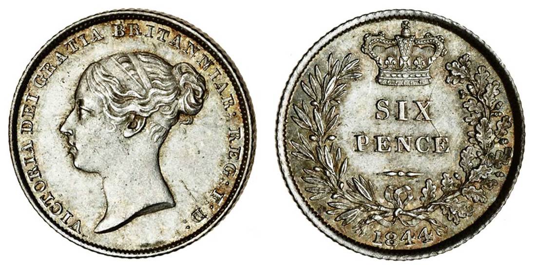Victoria (1837-1901), Sixpence, 1844 (large 44), type A1, first head left, rev. crowned mark of value within wreath (ESC 1690A; S.3908), extremely fine