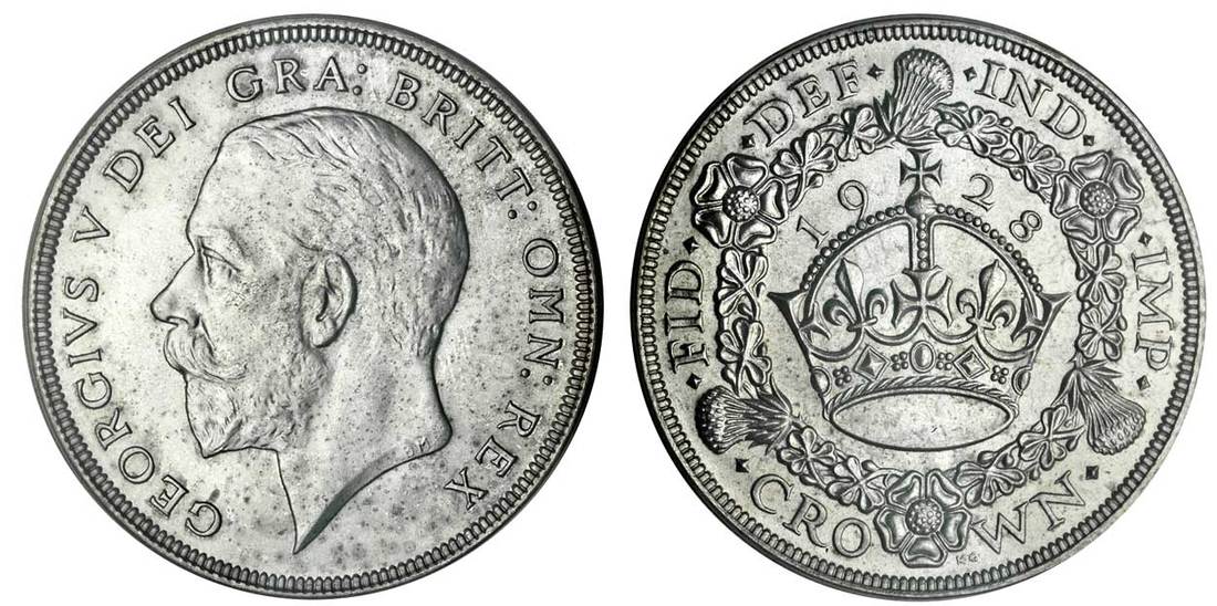 George V (1910-36), VIP proof Crown, 1928, modified bare head left, rev. large crown within circular wreath (ESC 368; S.4036), in PCGS holder 'PR64', minor spots to right of neck, otherwise brilliant mint state