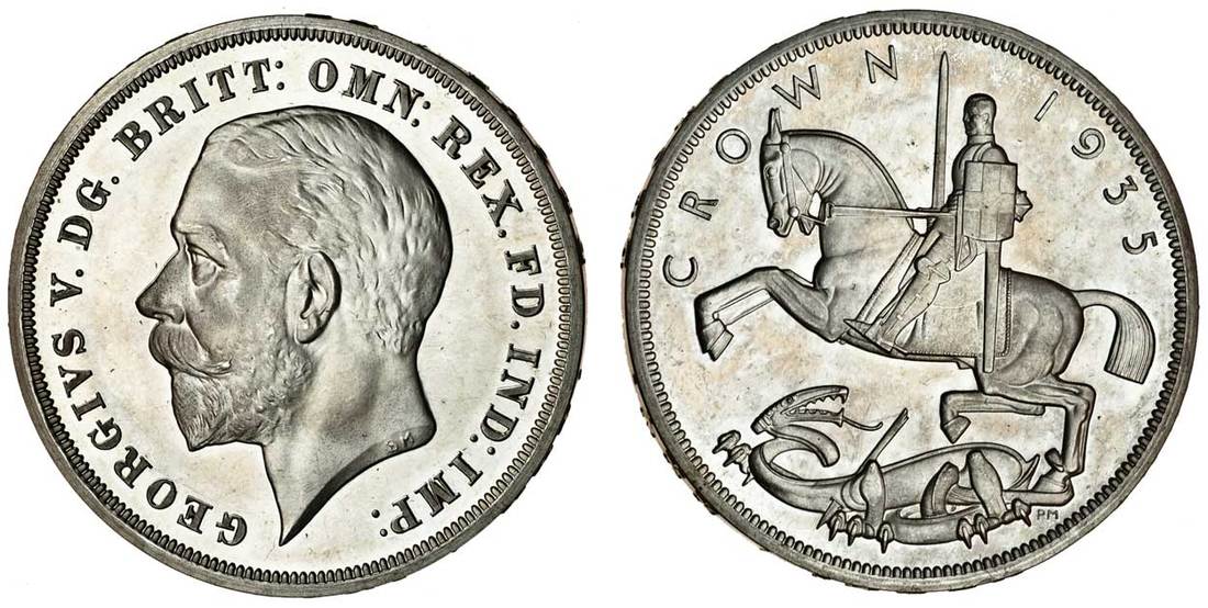 George V (1910-36), Crown, 1935, head left, rev. St George, raised lettering on edge (ESC 375; S.4050), the brilliance surfaces slightly cloudy, uncirculated