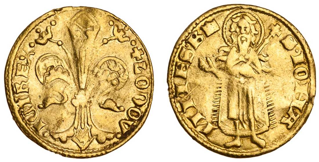 Hungary, Ludwig I, The Great (1342-82), Goldgulden (Ducat or Florin), 3.49g, undated, +lodov-ici rex, lily, rev. s. ioha-nnes. b, John the Baptist standing (Ch.3; HCz.6991 - R2; F.3), creased and with marks on the edge, very fine, rare
