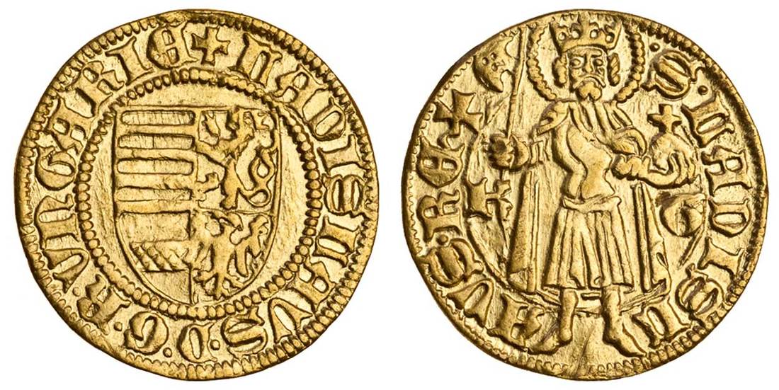 Hungary, Wladislaw V (1453-57), Goldgulden (Ducat or Florin), 3.49, undated, + ladislavs. d.g. r. vngarie, shield, rev. .s. ladisl - avs rex, saint standing, holding orb and axe, k-g in fields (F.16; Huszár 637), extremely fine